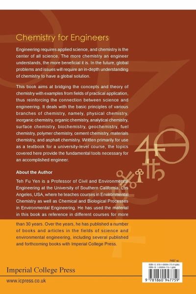 Engineering requires applied science, and chemistry is the center of all science. The more chemistry an engineer understands, the more beneficial it is. In the future, global problems and issues will require an in-depth understanding of chemistry to have a global solution.This book aims at bridging the concepts and theory of chemistry with examples from fields of practical application, thus reinforcing the connection between science and engineering. It deals with the basic principles of various branches of chemistry, namely, physical chemistry, inorganic chemistry, organic chemistry, analytical chemistry, surface chemistry, biochemistry, geochemistry, fuel chemistry, polymer chemistry, cement chemistry, materials chemistry, and asphalt chemistry. Written primarily for use as a textbook for a university-level course, the topics covered here provide the fundamental tools necessary for an accomplished engineer.
