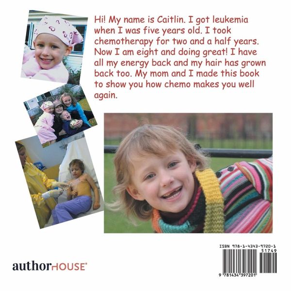 When my daughter, Caitlin, was diagnosed with leukemia, she was five years old. Our life changed dramatically, and it was hard to answer the questions she had about her illness and explain why she must go through chemotherapy for such a long time. At one point she began to rebel against the treatment, not understanding that the medicine that was making her feel bad was actually saving her life. Creating this book with Caitlin helped her to come to terms with her illness and accept the treatment. It gave her the power she needed to fight and be strong during the difficult times. She is now eight years old and fully recovered. She looks back on this time as challenging, yet with pride. We hope that our book will encourage other children in the same way by providing a positive outlook to chemotherapy and hospital life. To view our book and read our story please go to our webite at: http://www.chemo-to-the-rescue.com