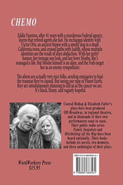 Eddie Funston, after 41 years with a murderous Federal agency, learns that retired agents die fast. He exchanges identity with Victor Otis, an ancient hippie with a smelly dog in a small California town, and crosses paths with Judith, whose multiple identities are the result of alien abduction. With her gritty humor, her teenage son Josh, and her lover Moshe, she's managed a life. But Moshe himself is an alien, and the Feds target her as an enemy sympathizer. The aliens are actually very nice folks, sending emissaries to heal the traumas they've caused. But seeing our rape of Planet Earth, they are simultaneously planning to kill us as the cancer we are. It's black, funny, and vaguely hopeful.
