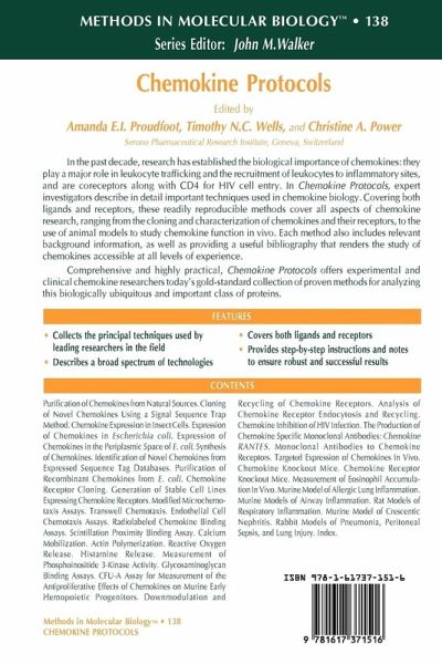 highly recommended...Seldom does on find so much valuable information, concisely presented and with such obvious potential for the future, made available in one volume." - E-Streams "...Chemokine Protocols is a collection of clear, well written protocols and I would recommend it as an excellent starting point for any scientist with an interest in chemokines." - Molecular Biotechnology