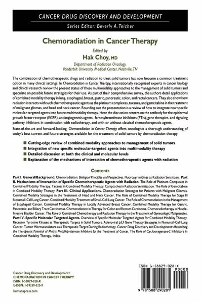 "Chemoradiaton in Cancer Therapy offers both clinical and basic oncologists not only a bold synthesis of the rapid and complex advances in new therapeutic modalities, but also highly practical guide to today's best strategies in cancer treatment." -Neoplasma