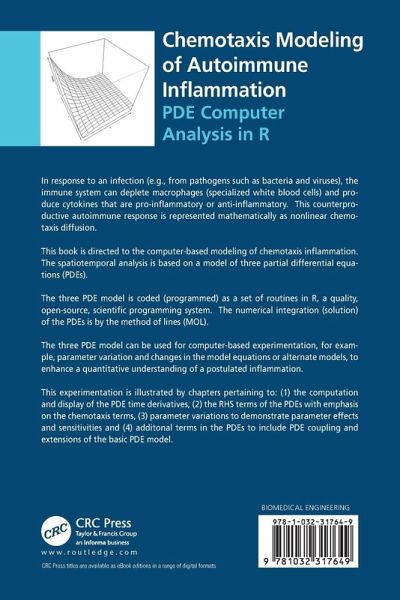 This book is directed to the computer-based modeling of chemotaxis inflammation, typically resulting from an infection by a pathogen (e.g., bacteria, viruses). The book has particular relevance to the coronavirus pandemic since long-Covid neurological impairment may be the result of brain inflammation.