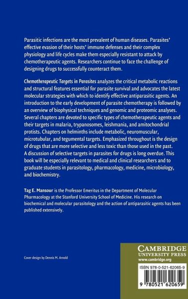 Parasitic infections are the most prevalent of human diseases, and researchers continue to face the challenge of designing drugs to successfully counteract them. Chemotherapeutic Targets in Parasites analyzes the critical metabolic reactions and structural features essential for parasite survival, and advocates the latest molecular strategies with which to identify effective antiparasitic agents. An introduction to the early development of parasite chemotherapy is followed by an overview of biophysical techniques and genomic and proteomic analysis. Several chapters are devoted to specific types of chemotherapeutic agents and their targets in malaria, trypanosomes, leishmania and amitochondrial protists. Chapters on helminths include metabolic, neuromuscular, microtubular and tegumental targets. Emphasized throughout is the design of more selective and less toxic drugs than in the past. This book will be especially relevant to medical and clinical researchers and to graduate students in parasitology, pharmacology, medicine, microbiology, and biochemistry.