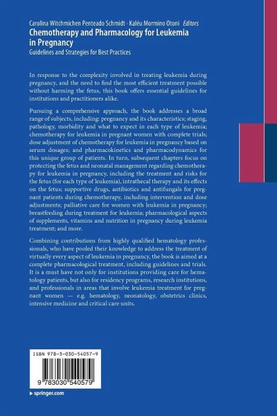 Pursuing a comprehensive approach, the book addresses a broad range of subjects, including: pregnancy and its characteristics; staging, pathology, morbidity and what to expect in each type of leukemia; chemotherapy for leukemia in pregnant women with complete trials; dose adjustment of chemotherapy for leukemia in pregnancy based on serum dosages; and pharmacokinetics and pharmacodynamics for this unique group of patients. In turn, subsequent chapters focus on protecting the fetus and neonatal management regarding chemotherapy for leukemia in pregnancy, including the treatment and risks for the fetus (for each type of leukemia), intrathecal therapy and its effects on the fetus; supportive drugs, antibiotics and antifungals for pregnantpatients during chemotherapy, including intervention and dose adjustments; palliative care for women with leukemia in pregnancy; breastfeeding during treatment for leukemia; pharmacological aspects of supplements, vitamins and nutrition in pregnancy during leukemia treatment; and more.