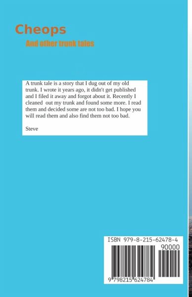 This is a collection of trunk tales. A trunk tale is a story which I dug out of my trunk. I wrote it years ago, it didn't get published, so I filed it away in my trunk and forgot about it. Recently I began winnowing my papers and found several that I think are not too bad. The first story, "Cheops," I first published as a stand alone short. It's now included. Cheops is an angry elephant, and you can't blame him. The other stories are a varied mix, from love to horror. I hope you will read them and decide they are not too bad. Steve