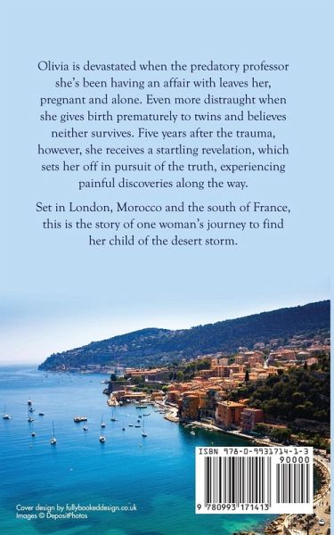 Olivia is devastated when the predatory professor she's been having an affair with leaves her, pregnant and alone. Even more distraught when she gives birth prematurely to twins and believes neither survived. Five years after the trauma, however, she receives a startling revelation, which sets her off in pursuit of the truth, experiencing painful discoveries along the way. Set in London, Morocco and the south of France, this is the story of one woman's journey to find her child of the desert storm.