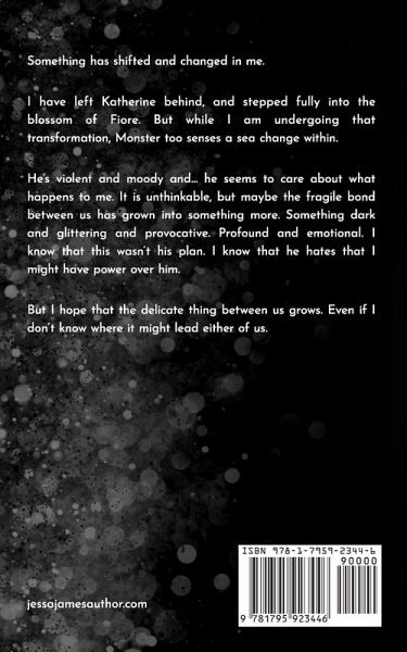 Something has shifted and changed in me. I have left Katherine behind, and stepped fully into the blossom of Fiore. But while I am undergoing that transformation, Monster too senses a sea change within. He's violent and moody and... he seems to care about what happens to me. It is unthinkable, but maybe the fragile bond between us has grown into something more. Something dark and glittering and provocative. Profound and emotional. I know that this wasn't his plan. I know that he hates that I might have power over him. But I hope that the delicate thing between us grows. Even if I don't know where it might lead either of us.