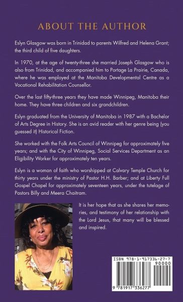 Eslyn Glasgow was born in Trinidad to parents Wilfred and Helena Grant; the third child of five daughters. In 1970, at the age of twenty-three, she married Joseph Glasgow, who is also from Trinidad, and accompanied him to Portage la Prairie, Canada, where he was employed at the Manitoba Developmental Centre as a Vocational Rehabilitation Counsellor. Over the last fifty-three years, they have made Winnipeg, Manitoba, their home. They have three children and six grandchildren. Eslyn graduated from the University of Manitoba in 1987 with a Bachelor of Arts degree in History. She is an avid…mehr