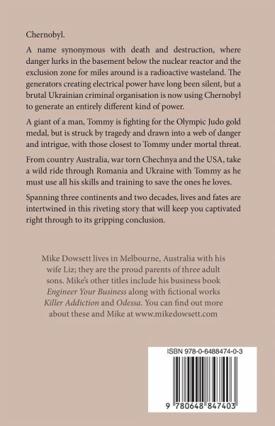 Chernobyl. A name synonymous with death and destruction, where danger lurks in the basement below the nuclear reactor and the exclusion zone for miles around is a radioactive wasteland. The generators creating electrical power have long been silent, but a brutal Ukrainian criminal organisation is now using Chernobyl to generate an entirely different kind of power. A giant of a man, Tommy is fighting for the Olympic Judo gold medal, but is struck by tragedy and drawn into a web of danger and intrigue, with those closest to Tommy under mortal threat.From country Australia, war torn Chechnya and the USA, take a wild ride through Romania and Ukraine with Tommy as he must use all his skills and training to save the ones he loves. Spanning three continents and two decades, lives and fates are intertwined in this riveting story that will keep you captivated right through to its gripping conclusion.