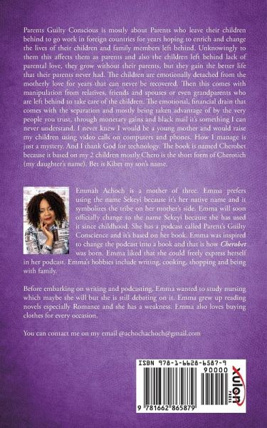 Parents Guilty Conscious is mostly about Parents who leave their children behind to go work in foreign countries for years hoping to enrich and change the lives of their children and family members left behind. Unknowingly to them this affects them as parents and also the children left behind lack of parental love, they grow without their parents, but they gain the better life that their parents never had. The children are emotionally detached from the motherly love for years that can never be recovered. Then this comes with manipulation from relatives, friends and spouses or even grandparents who are left behind to take care of the children. The emotional, financial drain that comes with the separation and mostly being taken advantage of by the very people you trust, through monetary gains and black mail it's something I can never understand. I never knew I would be a young mother and would raise my children using video calls on computers and phones. How I manage is just a mystery. And I thank God for technology. The book is named Cherobet because it based on my 2 children mostly Chero is the short form of Cherotich (my daughter's name). Bet is Kibet my son's name. Emmah Achoch is a mother of three. Emma prefers using the name Sekeyi because it's her native name and it symbolizes the tribe on her mother's side. Emma will soon officially change to the name Sekeyi because she has used it since childhood. She has a podcast called Parent's Guilty Conscience and it's based on her book. Emma was inspired to change the podcast into a book and that is how Cherobet was born. Emma liked that she could freely express herself in her podcast. Emma's hobbies include writing, cooking, shopping and being with family. Before embarking on writing and podcasting, Emma wanted to study nursing which maybe she will but she is still debating on it. Emma grew up reading novels especially Romance and she has a weakness. Emma also loves buying clothes for every occasion. You can contact me on my email @achochachoch@gmail.com