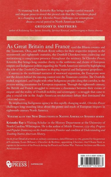 In 1754 South Carolina governor James Glen observed that the Tennessee River "has its rise in the Cherokee Nation and runs a great way through it." While noting the "prodigious" extent of the corridor connecting the Tennessee, Ohio, and Wabash River valleys-and the Cherokees' "undoubted" ownership of this watershed-Glen and other European observers were much less clear about the ambitions and claims of European empires and other Indigenous polities regarding the North American interior. In Cherokee Power, Kristofer Ray brings long-overdue clarity to this question by highlighting the role of the Overhill Cherokees in shaping imperial and Indigenous geopolitics in seventeenth- and eighteenth-century America. As Great Britain and France eyed the Illinois country and the Tennessee, Ohio, and Wabash River valleys for their respective empires, the Overhill Cherokees were coalescing and maintaining a conspicuous presence throughout the territory. Contrary to the traditional narrative of westward expansion, the Europeans were not the drivers behind the ensuing contest over the Tennessee corridor. The Overhills traded, negotiated, and fought with other Indigenous peoples along this corridor, in the process setting parameters for European expansion. Through the eighteenth century, the British and French struggled to overcome a dissonance between their visions of empire and the reality of Overhill mobility and sovereignty-a struggle that came to play a crucial role in the Anglo-American revolutionary debate that dominated the 1760s and 1770s. By emphasizing Indigenous agency in this rapidly changing world, Cherokee Power challenges long-standing ideas about the power and reach of European empires in eighteenth-century North America.