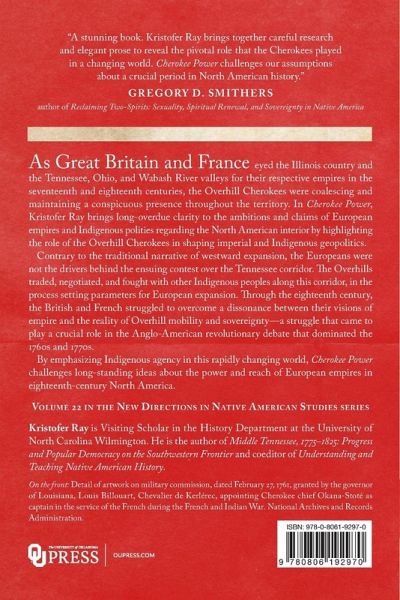 In 1754 South Carolina governor James Glen observed that the Tennessee River "has its rise in the Cherokee Nation and runs a great way through it." While noting the "prodigious" extent of the corridor connecting the Tennessee, Ohio, and Wabash River valleys-and the Cherokees' "undoubted" ownership of this watershed-Glen and other European observers were much less clear about the ambitions and claims of European empires and other Indigenous polities regarding the North American interior. In Cherokee Power, Kristofer Ray brings long-overdue clarity to this question by highlighting the role of the Overhill Cherokees in shaping imperial and Indigenous geopolitics in seventeenth- and eighteenth-century America. As Great Britain and France eyed the Illinois country and the Tennessee, Ohio, and Wabash River valleys for their respective empires, the Overhill Cherokees were coalescing and maintaining a conspicuous presence throughout the territory. Contrary to the traditional narrative of westward expansion, the Europeans were not the drivers behind the ensuing contest over the Tennessee corridor. The Overhills traded, negotiated, and fought with other Indigenous peoples along this corridor, in the process setting parameters for European expansion. Through the eighteenth century, the British and French struggled to overcome a dissonance between their visions of empire and the reality of Overhill mobility and sovereignty-a struggle that came to play a crucial role in the Anglo-American revolutionary debate that dominated the 1760s and 1770s. By emphasizing Indigenous agency in this rapidly changing world, Cherokee Power challenges long-standing ideas about the power and reach of European empires in eighteenth-century North America.