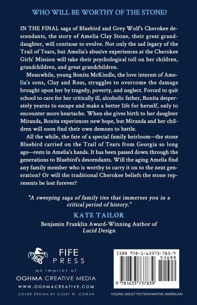 Who will be worthy of the stone? In the final chapter of Bluebird and Grey Wolf's Cherokee descendants, the story of Amelia Clay Stone, their great granddaughter, will continue to evolve. Not only the sad legacy of the Trail of Tears, but Amelia's abusive experiences at the Cherokee Girls' Mission will take their psychological toll on her children, grandchildren, and great grandchildren. Meanwhile, young Bonita McKindle, the love interest of Amelia's sons, Clay and Ross, struggles to overcome the damage brought upon her by tragedy, poverty, and neglect. Forced to quit school to care for her critically ill, alcoholic father, Bonita desperately yearns to escape and make a better life for herself, only to encounter more heartache. When she gives birth to her daughter Miranda, Bonita experiences new hope, but Miranda and her children will soon find their own demons to battle. All the while, the fate of a special family heirloom-the stone Bluebird carried on the Trail of Tears from Georgia so long ago-rests in Amelia's hands. It has been passed down through the generations to Bluebird's descendants. Will the aging Amelia find any family member who is worthy to carry it on to the next generation? Or will the traditional Cherokee beliefs the stone represents be lost forever?