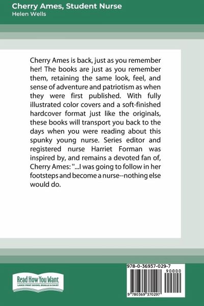 Cherry Ames is back, just as you remember her! The books are just as you remember them, retaining the same look, feel, and sense of adventure and patriotism as when they were first published. With fully illustrated color covers and a soft-finished hardcover format just like the originals, these books will transport you back to the days when you were reading about this spunky young nurse. Series editor and registered nurse Harriet Forman was inspired by, and remains a devoted fan of, Cherry Ames: ''...I was going to follow in her footsteps and become a nurse--nothing else would do. ''The United States is still fighting World War II. Cherry Ames is still an Army Nurse, this time aloft--as a flight nurse. Cherry is reunited with her corpsman Bunce--the two of them are in sole charge of ferrying severely wounded men out of the battlefield and to the nearest Army hospital. Much to Pilot Wade Cooper's chagrin, he has been taken off bomber duty to fly the wounded to safety--until Cherry makes him see otherwise. Off duty, the nurses ''adopt'' 6-year-old Muriel Grainger, who has known nothing but war in her short life, and whose mother has been killed by the Germans. Her father is often out on mysterious errands that cause some to label him a ''spy.'' Cherry makes it her risky business to find out if this is truth or rumor.