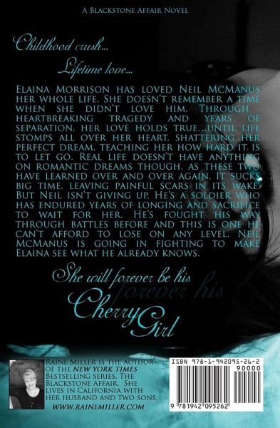 Childhood crush... Lifetime love... Never letting go... Elaina Morrison has loved Neil McManus her whole life. She doesn't remember a time when she didn't love him. Through heartbreaking tragedy and years of separation, her love holds true...until life stomps all over her heart, shattering her perfect dream, and teaching her how hard it is to let go. Real life doesn't have anything on romantic dreams though, as these two have learned over and over again. It sucks big time, leaving painful scars in its wake. But Neil isn't giving up. He's a soldier who has endured years of longing and sacrifice to wait for her. He's fought his way through battles before and this is one he can't afford to lose on any level. Neil McManus is going in fighting to make Elaina see what he already knows. That she will forever be his Cherry Girl...