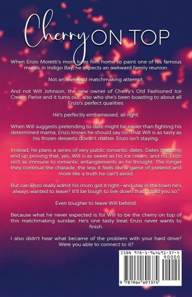 When Enzo Moretti's mom lures him home to paint one of his famous murals in Indigo Bay, he expects an awkward family reunion. Not an awkward matchmaking attempt. And not Will Johnson, the new owner of Cherry's Old Fashioned Ice Cream Parlor and it turns out, also who she's been boasting to about all Enzo's perfect qualities. He's perfectly embarrassed, all right. When Will suggests pretending to date might be easier than fighting his determined mama, Enzo knows he should say no. That Will is as tasty as his frozen desserts doesn't matter. Enzo isn't staying. Instead, he plans a series of very public romantic dates. Dates that only end up proving that, yes, Will is as sweet as his ice cream, and no, Enzo isn't as immune to romantic entanglements as he thought. The longer they continue the charade, the less it feels like a game of pretend and more like a truth he can't avoid. But can Enzo really admit his mom got it right-and stay in the town he's always wanted to leave? It'll be tough to live down that "I told you so." Even tougher to leave Will behind. Because what he never expected is for Will to be the cherry on top of this matchmaking sundae. He's one tasty treat Enzo never wants to finish.