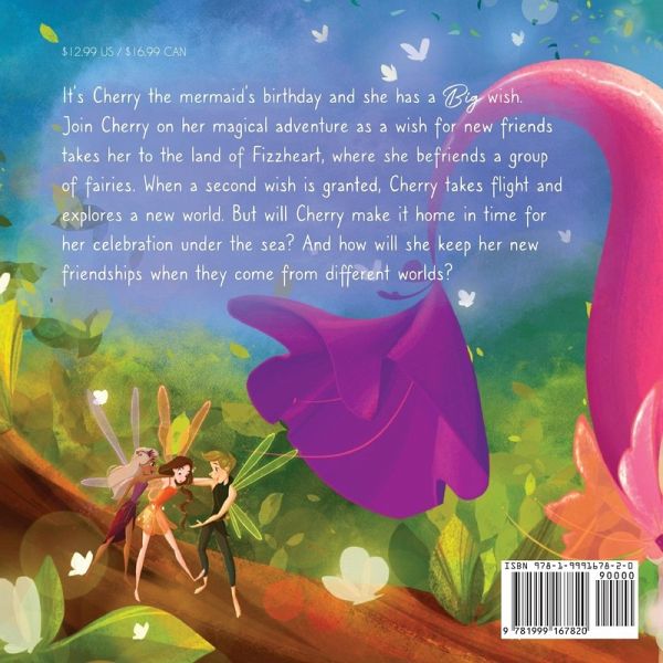 It's Cherry the mermaid's birthday, and she has a big wish. Join Cherry on her magical adventure as a wish for new friends takes her to the land of Fizzheart, where she befriends a group of fairies. When a second wish is granted, Cherry takes flight and explores a new world. But will Cherry make it home in time for her celebration under the sea? And how will she keep her new friendships when they come from different worlds?