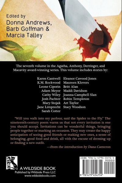 The ninth volume in the Chesapeake Crimes series presents an impressive set of tales by new and well-established authors. Included this time are: INTRODUCTION, by Dana Cameron THE DAME AND THADDEUS BIRDWHISTLE, by Karen Cantwell SECRETS TO THE GRAVE, by K.M. Rockwood THE MYSTERIOUS AFFAIR AT THE ESCAPE ROOM, by Leone Ciporin THE DO-GOODER, by Adam Meyer THE PROBLEM WITH OPEN-ENDED INVITATIONS, by Cathy Wiley MUGGINS, by Josh Pachter THE KILLING WINDS, by Mary Stojak MAKE NEW FRIENDS, BUT KEEP THE OLD, by Jane Limprecht GOOD MORNING, GREEN LEAF CLASS, by Sarah Cotter THE GREAT BEDBUG INCIDENT AND THE INVITATION OF DOOM, by Eleanor Cawood Jones GUNS AND YOGA, by Maureen Klovers RFP/RIP, by Britt Alan AUMAKUA, by Maddi Davidson THE COLOR OF ENVY, by Joanna Campbell Slan TRUE COLORS, by Robin Templeton ALL TOMORROW'S PARTIES, by Art Taylor SUNNYSIDE, by Stacy Woodson "Will you walk into my parlour, said the Spider to the Fly." The nineteenth-century poem warns us that not every invitation is one you should accept. Invitations can be wonderful things, bringing people together or marking an occasion.... But all that changes when crime writers have their way. -from the introduction by Dana Cameron