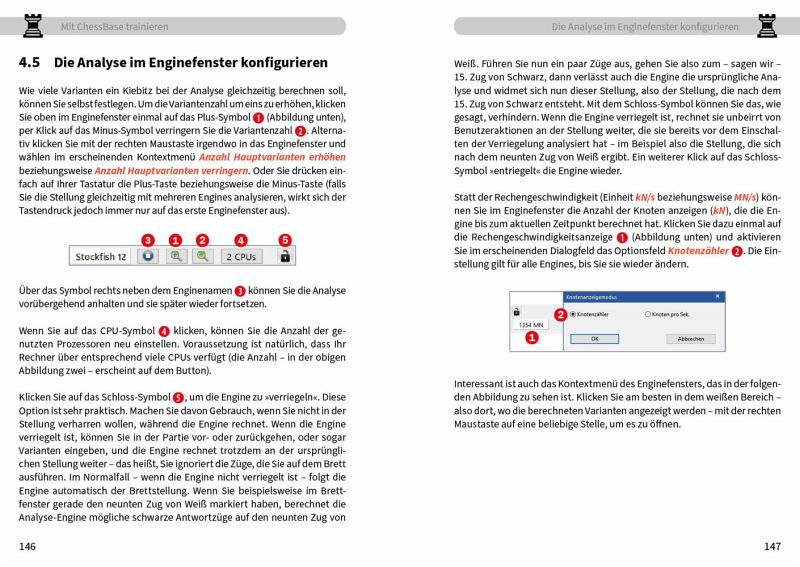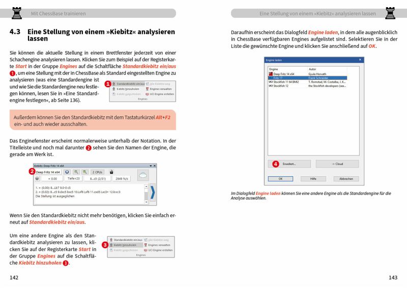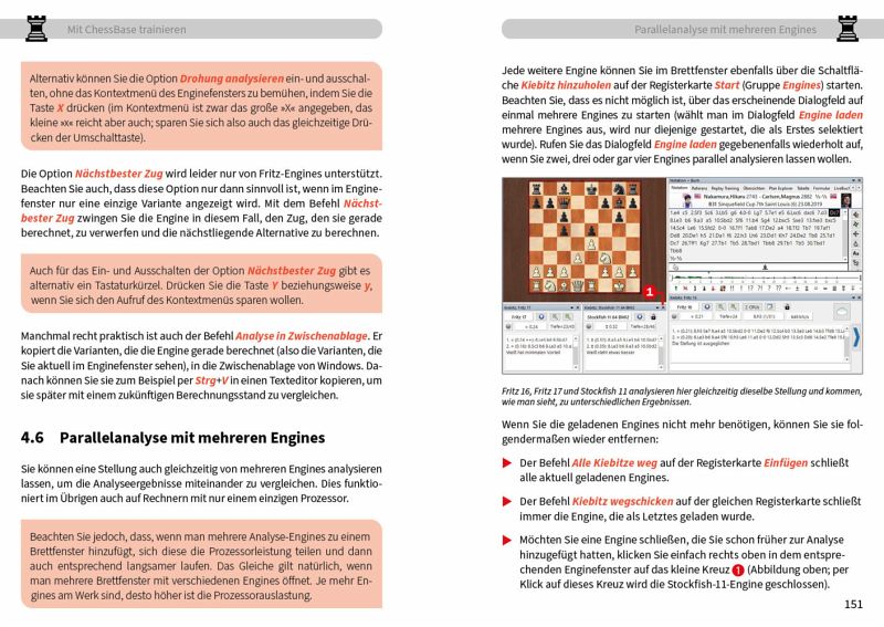 Mit ChessBase trainierenAssisted Analysis sowie taktische und tiefe AnalyseChessBase mit Analysen beauftragenEröffnungsübersichten generieren lassenMit dem Plan Explorer Motive der Stellung besser verstehenSpezielle Methoden bei der ZugeingabeEigene Eröffnungsbücher erstellenNeue Engines einbindenChessBase DatenbankmanagementUpdate-Service für MegabaseTop Online-Features