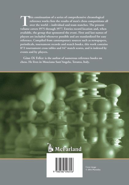 This continuation of a series of comprehensive chronological reference works lists the results of men's chess competitions all over the world--individual and team matches. The present volume covers 1975 through 1977. Entries record location and, when available, the group that sponsored the event. First and last names of players are included whenever possible and are standardized for easy reference. Compiled from contemporary sources such as newspapers, periodicals, tournament records and match books, this work contains 872 tournament cross tables and 147 match scores, and is indexed by events and by players.