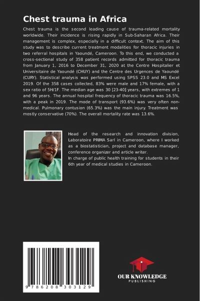 Chest trauma is the second leading cause of trauma-related mortality worldwide. Their incidence is rising rapidly in Sub-Saharan Africa. Their management is complex, especially in a difficult context. The aim of this study was to describe current treatment modalities for thoracic injuries in two referral hospitals in Yaoundé, Cameroon. To this end, we conducted a cross-sectional study of 358 patient records admitted for thoracic trauma from January 1, 2016 to December 31, 2020 at the Centre Hospitalier et Universitaire de Yaoundé (CHUY) and the Centre des Urgences de Yaoundé (CURY). Statistical analysis was performed using SPSS 23.0 and MS Excel 2019. Of the 358 cases collected, 83% were male and 17% female, with a sex ratio of 5H/1F. The median age was 30 [23-40] years, with extremes of 1 and 96 years. The annual hospital frequency of thoracic trauma was 16.5%, with a peak in 2019. The mode of transport (93.6%) was very often non-medical. Pulmonary contusion (65.3%) was the maininjury. Treatment was mostly conservative (70%). The overall mortality rate was 13.6%.