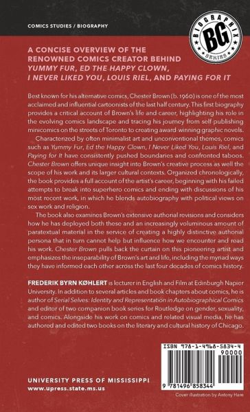 Best known for his alternative comics, Chester Brown (b. 1960) is one of the most acclaimed and influential cartoonists of the last half century. This first biography provides a critical account of Brown's life and career, highlighting his role in the evolving comics landscape and tracing his journey from self-publishing minicomics on the streets of Toronto to creating award-winning graphic novels. Characterized by often minimalist art and unconventional themes, comics such as Yummy Fur, Ed the Happy Clown, I Never Liked You, Louis Riel, and Paying for It have consistently pushed boundaries and confronted taboos. Chester Brown offers unique insight into Brown's creative process as well the scope of his work and its larger cultural contexts. Organized chronologically, the book provides a full account of the artist's career, beginning with his failed attempts to break into superhero comics and ending with discussions of his most recent work, in which he blends autobiography with political views on sex work and religion. The book also examines Brown's extensive authorial revisions and considers how he has deployed both these and an increasingly voluminous amount of paratextual material in the service of creating a highly distinctive authorial persona that in turn cannot help but influence how we encounter and read his work. Chester Brown pulls back the curtain on this pioneering artist and emphasizes the inseparability of Brown's art and life, including the myriad ways they have informed each other across the last four decades of comics history.