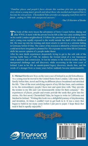 The body of this story traces the adventures of Terry Cooper before, during and after WWII. It starts with the private loss he felt as the war came crashing down on his north London neighborhood. It follows his personal growth both as a soldier and a young man rapidly exposed to the world outside the shell of his childhood life. He must tap into his training and street smarts to survive as an undercover agent hiding in Germany before D-Day, and the course of his mission is altered by a bazaar event he could never have imagined or planned for. His exposure to war time life in Germany shifts his narrow opinion of a people under threat. After his near death experiences desperately trying to get to the safe side of the moving battle lines of 1944, he endures the twisted mind of a war bureaucrat with a uniform and commission. At last he returns to his beloved mother and the unexpected challenge and self discovery while recovering in the west coast of Ireland. Later in his life an unanticipated legacy discovery shocks him, and the words of a stranger from so many years before suddenly become understandable.