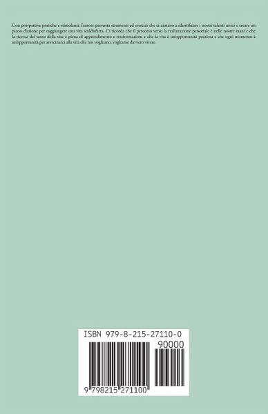 Con prospettive pratiche e stimolanti, l'autore presenta strumenti ed esercizi che ci aiutano a identificare i nostri talenti unici e creare un piano d'azione per raggiungere una vita soddisfatta. Ci ricorda che il percorso verso la realizzazione personale è nelle nostre mani e che la ricerca del senso della vita è piena di apprendimento e trasformazioni e che la vita è un'opportunità preziosa e che ogni momento è un'opportunità per avvicinarci alla vita che noi ¿vogliamo, vogliamo davvero vivere.