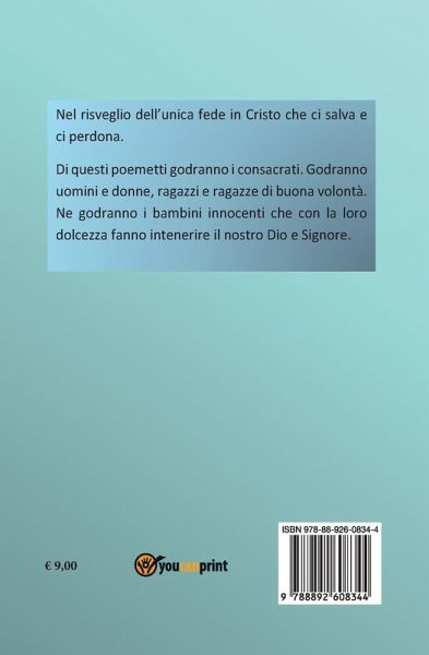 Nel risveglio dell'unica fede in Cristo che ci salva e ci perdona. Di questi poemetti godranno i consacrati. Godranno uomini e donne, ragazzi e ragazze di buona volontà. Ne godranno i bambini innocenti che con la loro dolcezza fanno intenerire il nostro Dio e Signore