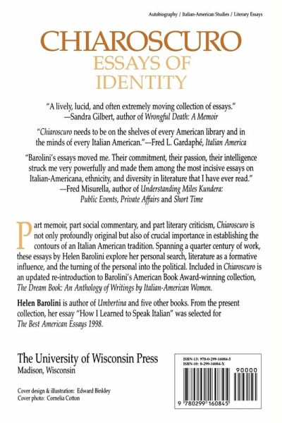 Spanning a quarter century of work, the essays in Helen Barolini's Chiaroscuro explore her personal search; literature as a formative influence; and the turning of the personal into the political.