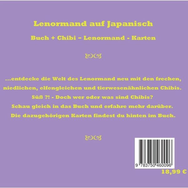 Lenormand auf Japanisch - "Buch + Chibi - Lenormand - Karten - Set "...entdecke die Welt des Lenormand neu mit den frechen, niedlichen, elfengleichen und tierwesenähnlichen Chibis. Süß ?! - Doch wer oder was sind Chibis ? Schau gleich in das Buch und erfahre mehr darüber. Die dazugehörigen Karten findest du hinten im Buch.