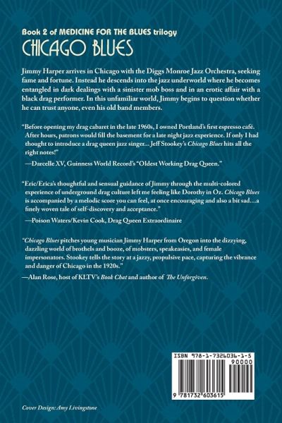 Chicago Blues, Book 2 of the trilogy Medicine for the Blues Jimmy Harper arrives in Chicago with the Diggs Monroe Jazz Orchestra, seeking fame and fortune. Instead he descends into the jazz underworld where he becomes entangled in dark dealings with a sinister mob boss and in an erotic affair with a black drag performer. In this unfamiliar world, Jimmy begins to question whether he can trust anyone, even his old band members. The trilogy Medicine for the Blues explores the complexities of gender and sexuality through the historical lens of the early 1920s. Chicago Blues follows Book 1 Acquaintance. The story continues in Book 3 Dangerous Medicine.