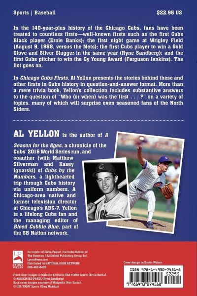 In Chicago Cubs Firsts, Al Yellon presents the stories behind those and other firsts in Cubs history in question-and-answer format. More than a mere trivia book, Yellon’s collection includes substantive answers to the question of "Who (or when) was the first…?" on a variety of topics, many of which will surprise even seasoned fans of the North Siders.