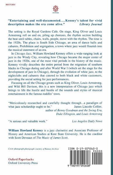 In Chicago Jazz, William Howland Kenney presents a wide-ranging look at jazz in the Windy City, revealing how Chicago became the major center for jazz in the 1920s. Focusing on all the Chicago greats--Louis Armstrong, King Oliver, Wild Bill Davison, and more--Kenney brings a golden era of jazz alive.