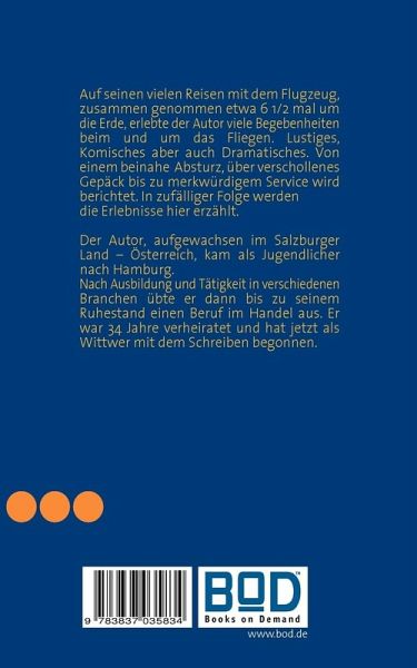 Auf seinen vielen Reisen mit dem Flugzeug, zusammen genommen etwa 6 ½-mal um die Erde, erlebte der Autor viele Begebenheiten beim und um das Fliegen. Lustiges, Komisches aber auch Dramatisches. Von einem beinahe Absturz, über verschollenes Gepäck bis zu merkwürdigem Service wird berichtet. In zufälliger Folge werden die Erlebnisse hier erzählt.