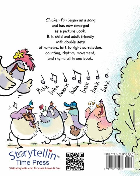 Count along from 1 to 10 - double sets of chickens, hilarious giggles as lively chickens flap, hop, and waddle through a day of pure silliness. These spirited chickens dance, play baseball, hunt for the farmer, pull a few pranks, and even skedaddle backward around the barnyard! With its catchy rhythm, colorful illustrations, and cheerful counting theme, Chicken Fun turns early learning into a joyful read-aloud experience. Perfect for preschoolers and early elementary readers, this barnyard romp builds number sense, language, and laughter - all in one clucking-good time. Whether shared at…mehr
