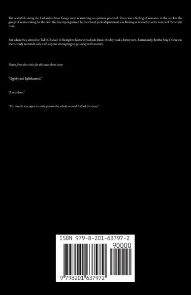 The waterfalls along the Columbia River Gorge were as stunning as a picture postcard. There was a feeling of romance in the air. For the group of seniors along for the ride, the day trip organized by their local parks department was flowing as smoothly as the waters of the iconic river. But when they arrived at Tad's Chicken 'n Dumplins historic roadside diner, the day took a bitter turn. Fortunately, Bertha May Olson was there, ready to match wits with anyone attempting to get away with murder. Praise from the critics for this new short story: "Quirky and lighthearted." "A standout." "My mouth was open in anticipation the whole second half of the story."