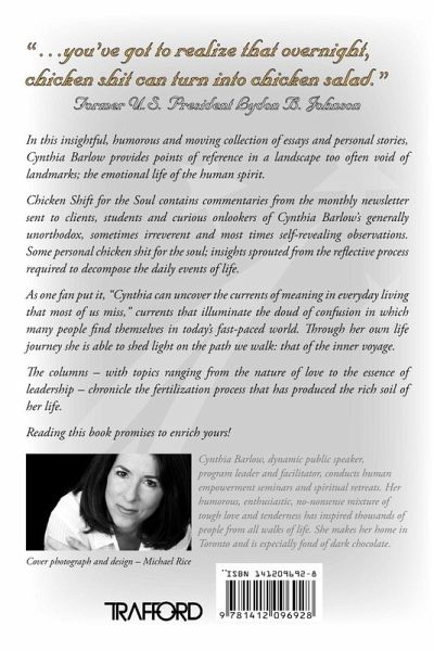 Cynthia Barlow is a facilitator, coach and author of several books. A specialist in Emotional Intelligence, she has conducted leadership development programs for over thirty years for clients like TD Bank, Bell, Bank of America, AutoZone and Amex. Her coaching clients range from top executives to everyday people looking for ways to notch up their performance. A popular and experienced key-note speaker, Cynthia has inspired thousands of people to look a little deeper and reach a little higher with her direct, humorous, and slightly sassy style. She says the highest compliment she has ever received is this: "You paint word-pictures blind people can see." Mother to two grown sons (and two grandchildren), Cynthia is passionate about words, water, puppies, and chocolate, which she is certain is a valid food group. She is driven by truth, trust, and transparency, and makes her home in Toronto.
