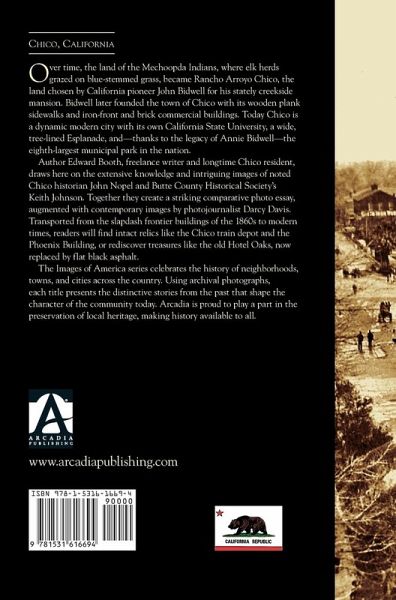 Over time, the land of the Mechoopda Indians, where elk herds grazed on blue-stemmed grass, became Rancho Arroyo Chico, the land chosen by California pioneer John Bidwell for his stately creekside mansion. Bidwell later founded the town of Chico with its wooden plank sidewalks and iron-front and brick commercial buildings. Today Chico is a dynamic modern city with its own California State University, a wide, tree-lined Esplanade, and--thanks to the legacy of Annie Bidwell--the eighth-largest municipal park in the nation.
