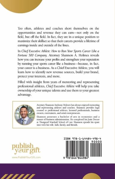 Too often, athletes and coaches short themselves on the opportunities and revenue they can earn-not only on the field, but off the field. In fact, they are in a unique position to maximize their skillset so that their careers provide a lifetime of earnings inside and outside of the lines. In Chief Executive Athlete: How to Run Your Sports Career Like a Fortune 500 Company, Attorney Shannon A. Holmes reveals how you can increase your profits and strengthen your reputation by running your sports career like a business-because, in fact, your career is a business. As a Chief Executive Athlete, you will learn how to identify new revenue sources, build your brand, protect your interests, and more. Filled with insight from years of consulting with and representing professional athletes, Chief Executive Athlete, a guide for athletes and coaches, will help you take ownership of your unique talents and use it to your greatest advantage.