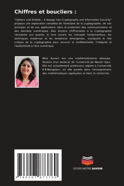 "Ciphers and Shields : A Voyage into Cryptography and Information Security" propose une exploration complète de l'évolution de la cryptographie, de ses principes et de ses applications dans la protection des communications et des données numériques. Des anciens chiffrements à la cryptographie résistante aux quanta, le livre couvre les concepts fondamentaux, les techniques modernes et les tendances émergentes, soulignant le rôle critique de la cryptographie pour assurer la confidentialité, l'intégrité et l'authenticité à l'ère numérique.