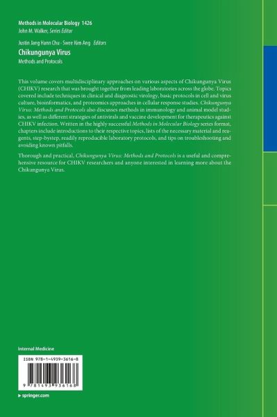 Thorough and practical, Chikungunya Virus: Methods and Protocols is auseful and comprehensive resource for CHIKV researchers and anyone interestedin learning more about the Chikungunya Virus.