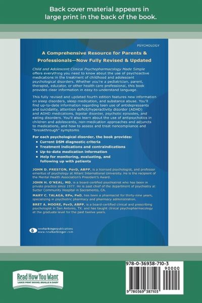 A classic in its field, Child and Adolescent Clinical Psychopharmacology Made Simple provides parents, therapists, and health care professionals all they need to know about the use of psychoactive medications in the treatment of childhood and adolescent psychological disorders in easy-to-understand language. This fully revised and updated fourth edition includes new information about sleep disorders, sleep medication, substance abuse, and more.
