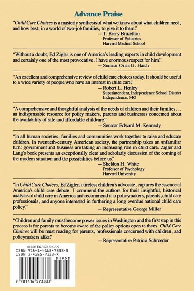 In this analysis of childcare in America, Edward F. Zigler and Mary E. Lang examine the structural inadequacies of childcare and approach the needs of children based on age. As more and more families begin to enroll their children into childcare networks outside of their homes, it has become far too common that these environments compromise the cognitive and social development of children. In a long-awaited definitive anatomy of the American childcare system, Child Care Choices addresses the patchwork construction of a system that, at best, has become increasingly inadequate to meet the needs of a changing society. Putting the methods that have succeeded up against those that have failed in broad historical and cross-cultural perspective, the authors of this book review different approaches of childcare in the United States from colonial times to World War II and all the way up to present day. Child Care Choices provides essential information for those concerned with children and the policies affecting family life and parental participation in the work force, from parents and policymakers to corporate executives and childcare professionals.