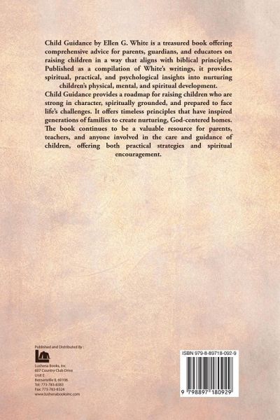 Child Guidance by Ellen G. White is a treasured book offering comprehensive advice for parents, guardians, and educators on raising children in a way that aligns with biblical principles. Published as a compilation of White's writings, it provides spiritual, practical, and psychological insights into nurturing children's physical, mental, and spiritual development. Child Guidance provides a roadmap for raising children who are strong in character, spiritually grounded, and prepared to face life's challenges. It offers timeless principles that have inspired generations of families to create nurturing, God-centered homes. The book continues to be a valuable resource for parents, teachers, and anyone involved in the care and guidance of children, offering both practical strategies and spiritual encouragement.