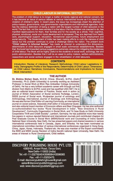 The present book "Child Labour in Informal Sector" has made an attempt to understand the dimensions, determinants of child labourers engaged in small scale commercial establishments. Besides that, the book has forwarded various suggestions extremely relevant for mitigating the incidences of child labour. The Book will be highly useful to the students of social work, sociology, law and public administration.