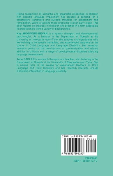 Rising recognition of semantic and pragmatic disabilities in children with specific language impairment has created a demand for a satisfactory framework and suitable methods for assessment and remediation. This book reports on progress in research and practice in a form accessible to professionals from a variety of backgrounds.