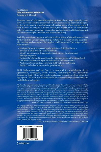 "In a tightly written yet comprehensive volume, Professor Levesque has masterfully provided one of the most thoughtful analyses to date of modern American responses to child maltreatment. Levesque offers valuable insights to a broad range of readers, rendering the material accessible to those new to the field, and--for those with expertise in the area of child protection--shedding new light on the perennial and intransigent problems that plague our nation's approach to child welfare. Levesque adeptly blends legal, social scientific, and policy-oriented perspectives, challenging traditional assumptions, and delivering an original, provocative, and highly satisfying treatment of the subject matter, maintaining a nuanced and balanced stance from the first page to the last."