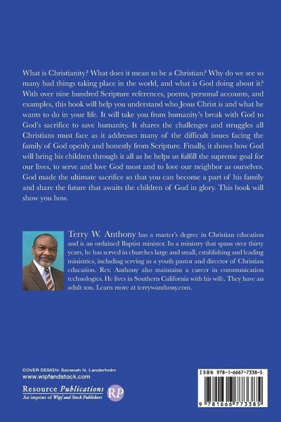 What is Christianity? What does it mean to be a Christian? Why do we see so many bad things taking place in the world, and what is God doing about it? With over nine hundred Scripture references, poems, personal accounts, and examples, this book will help you understand who Jesus Christ is and what he wants to do in your life. It will take you from humanity's break with God to God's sacrifice to save humanity. It shares the challenges and struggles all Christians must face as it addresses many of the difficult issues facing the family of God openly and honestly from Scripture. Finally, it shows how God will bring his children through it all as he helps us fulfill the supreme goal for our lives, to serve and love God most and to love our neighbor as ourselves. God made the ultimate sacrifice so that you can become a part of his family and share the future that awaits the children of God in glory. This book will show you how.