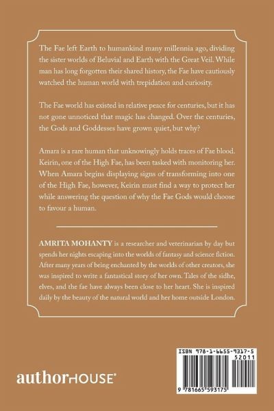 The Fae have left earth to humankind many millennia ago, dividing the sister worlds of Beluvial and Earth with the Great Veil. While man has long forgotten their shared history, the Fae have cautiously watched the human world. Keirin, one of the High Fae, has been tasked with monitoring a rare human that unknowingly holds traces of Fae blood. While the Fae world has existed in relative peace for centuries, it has not gone unnoticed that magic has been changing. Over the centuries and the Gods and Goddesses are growing quiet. When Keirin's charge, Amara, begins displaying signs of transforming into one of the High Fae, he must find a way to protect her while answering the question of why the Fae Gods would choose to favour a human.